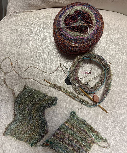 Nachdem ich am 9. Februar den Adventskalender vom Spinnernetz komplett versponnen hatte und zwei Stränge gewaschen hatte, habe ich zusammen mit meiner Freundin Susanne geschaut was ich aus diesen beiden Strängen plus den beiden vom Vorjahr herstellen kann. Wir haben uns für den Ebbie Cardigan von Alice Caetano entschieden, den ich inzwischen angeschlagen habe. Ich hoffe meine Berechnungen stimmen, da meine Lauflänge völlig anders ist, als von der vorgeschlagenen Wolle und sich so eine gewellte Maschenprobe schwierig ausmessen lässt.